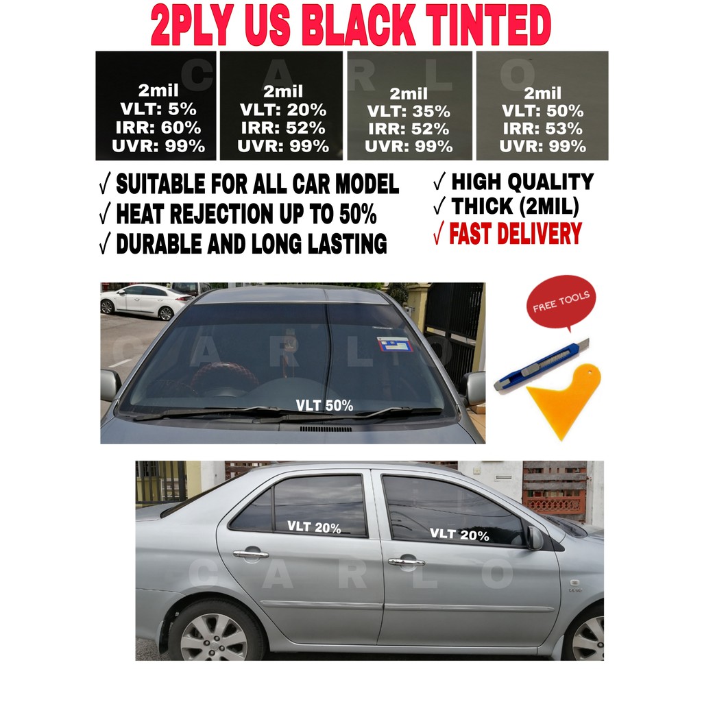 Tinted Kereta Car Tinted Tinted Gelap 2ply Us Black Tinted Tinted Uv Gelap 50 65 80 95 Shopee Malaysia